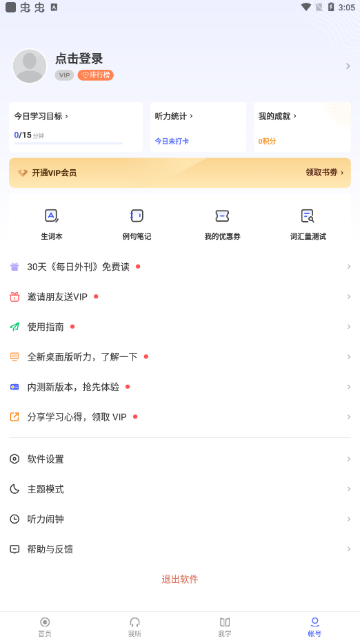 起床闹钟功能,每天起床后即可播放当天最新的英语听力