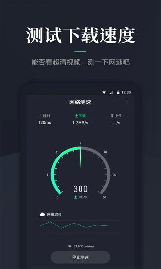 1、专为用户测量网速而设计,支持一键快速测量网速,帮助用户实时了解网络波动情况;