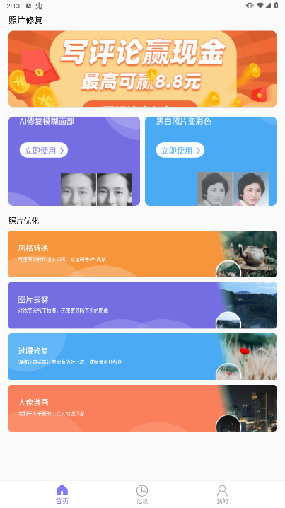 模糊照片修复是一款可以帮助用户更好更快地修复旧照片的应用软件。借助最新版本的模糊照片修复软件,这款免费的应用程序可以让用户只需一键快速刷新一些旧照片。此外,它还收集了很多不错的风格内容,可以轻松转换和生成照片背景图片风格。