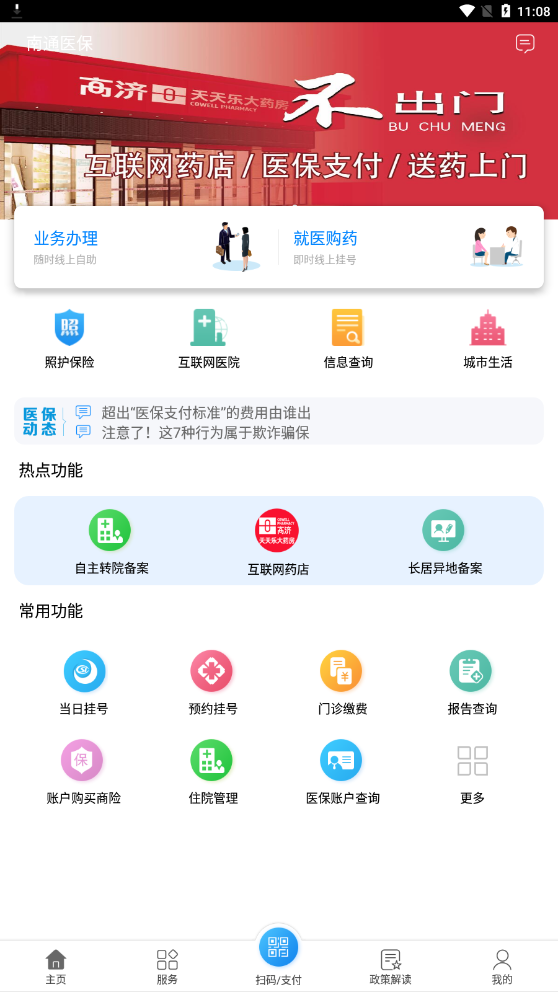 1、为南通医保参保人员提供个人现金、医保基金到指定单位预约挂号、门诊缴费、就医、购药“一键”支付,住院押金网上支付