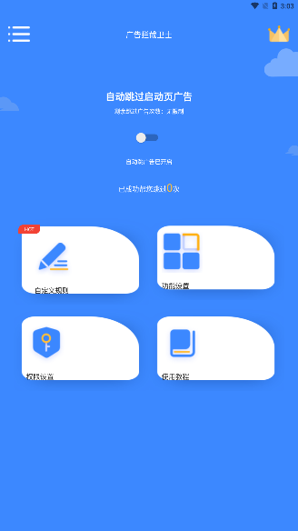 在应用首页,打开“立即”按钮即可自动屏蔽广告并立即屏蔽广告。