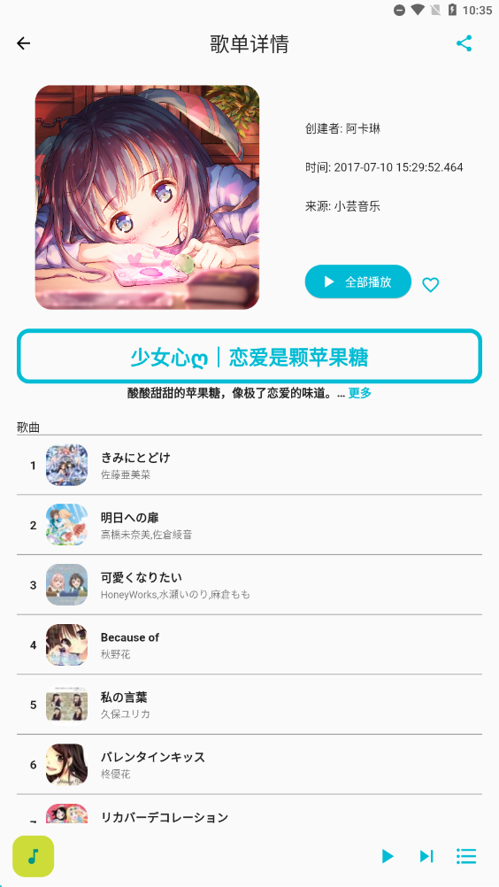 4.收听与收藏:点击播放列表中的歌曲即可开始收听;如果您喜欢该播放列表和音乐,可以点击收藏按钮,方便日后查找。