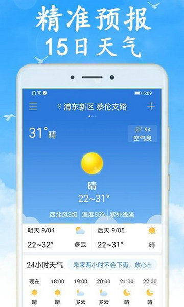 一款非常实用的天气软件。该软件具有强大的天气预报功能。用户可以通过软件了解未来7天、10天、15天的天气预报查询、空气质量查询等服务,帮助您更好地规划行程,增添温馨。实时更新预报,了解您的精彩生活!