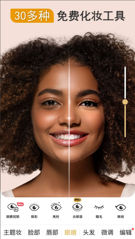 1.美肤:提供多种美肤、瘦脸、放大眼睛等功能,让自拍更加自然美丽。