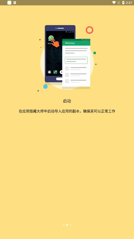 - 快速跳回应用隐藏主机主界面(启动应用隐藏主机内部应用后,应用会显示应用隐藏主机主界面,点击悬停)
