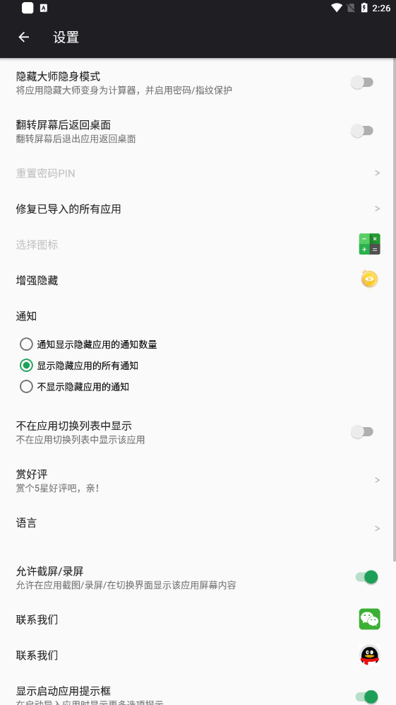 - 伪装隐藏应用程序主图标的功能(使隐藏的应用程序主图标难以被发现,伪装成计算器图标并具有计算器功能)