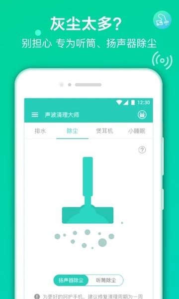 声波清理大师去水安卓版是一款实用的手机软件,具有排水、除尘、耳机烧录等多种功能。它可以帮助用户轻松清理手机空间,加快手机运行速度。作为一款专业的手机清理工具,Sonic Cleaner可以扫描并清理垃圾文件,让您的手机更加流畅。