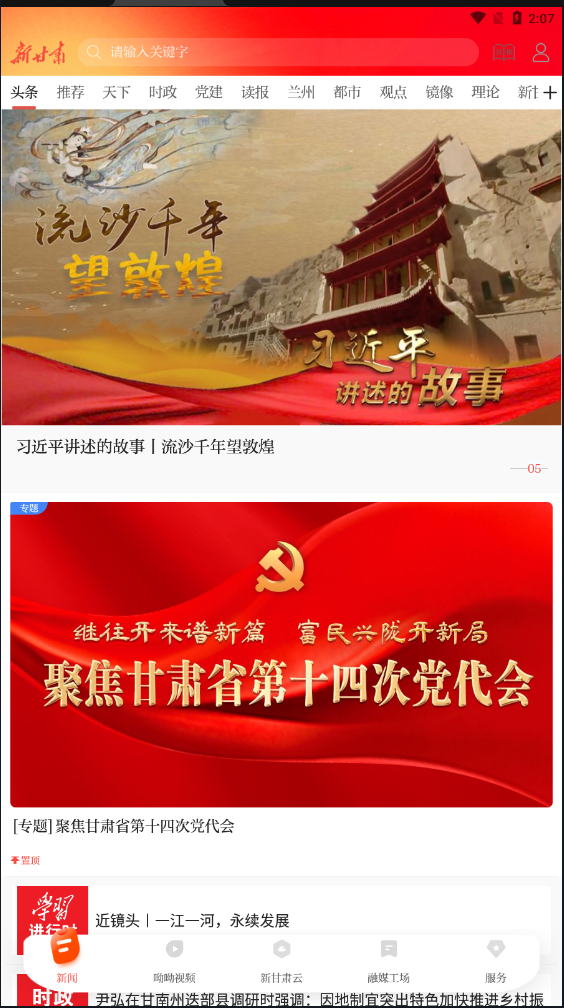 首页:聚合甘肃新媒体集团旗下各大门户网站所有平台信息,包括头条、推荐、世界、波澜壮阔40年、新视野、都市时事、新农村、新经济、新视角、新校园、心旅游、生活家居、文化等频道。