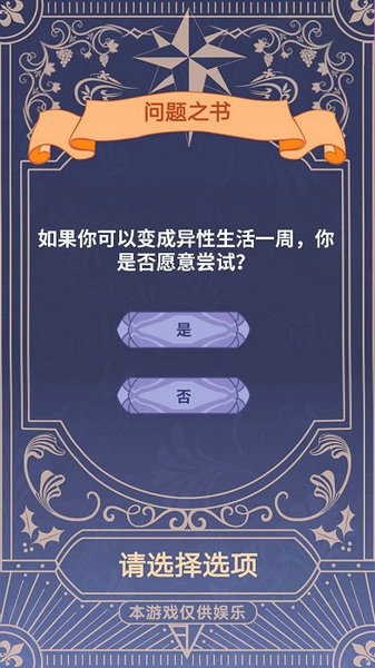 一款非常独特的休闲游戏。玩家可以输入任何问题,本书会帮你解答。你是否觉得生活中的鸡汤太多了?别再想这些琐碎的问题了!把所有输入的问题留在这里,本书会告诉你答案!你不仅可以写下心中的疑惑,还可以帮助你的朋友,或者写下你对朋友的看法,系统会给你答案,帮你分析问题!