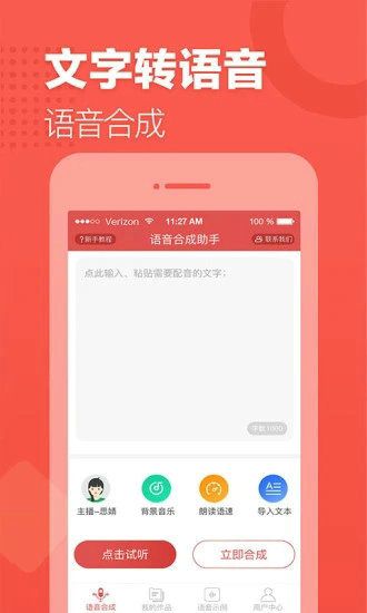 一款专业的文字转语音配音软件,适用于商场店铺促销、广告销售配音、摊位销售录音制作、英语听力音频制作、音频朗读等。语音合成必备的配音神器;专业的文字转语音一键合成,满足您的多种需求。