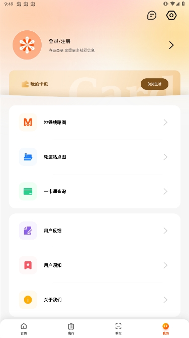 2.首页展示常用路线和站点集合。无需输入,点击即可立即搜索;