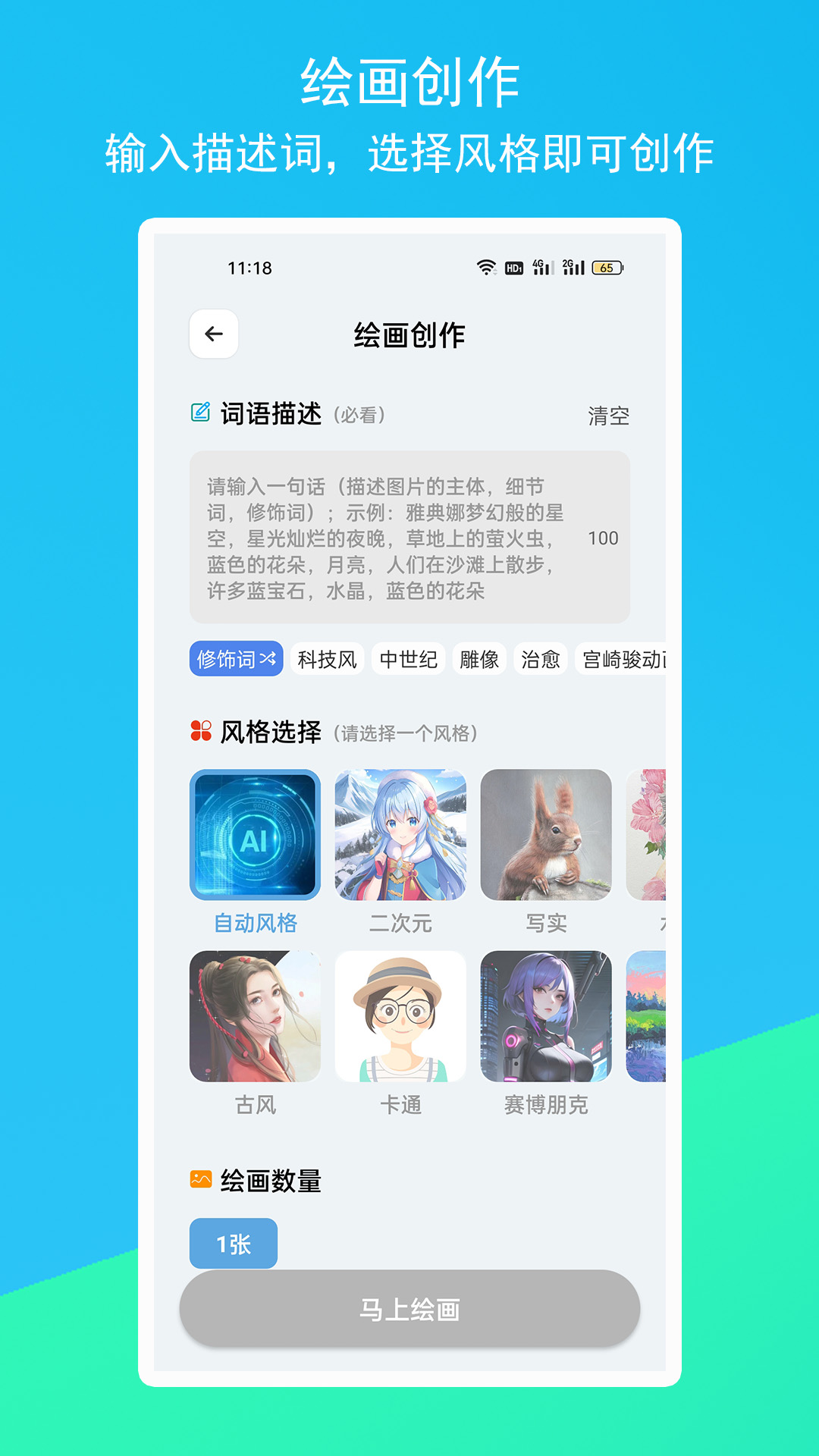 2.模拟多种艺术风格:提供多种不同艺术风格模板,包括油画、卡通、水彩等。