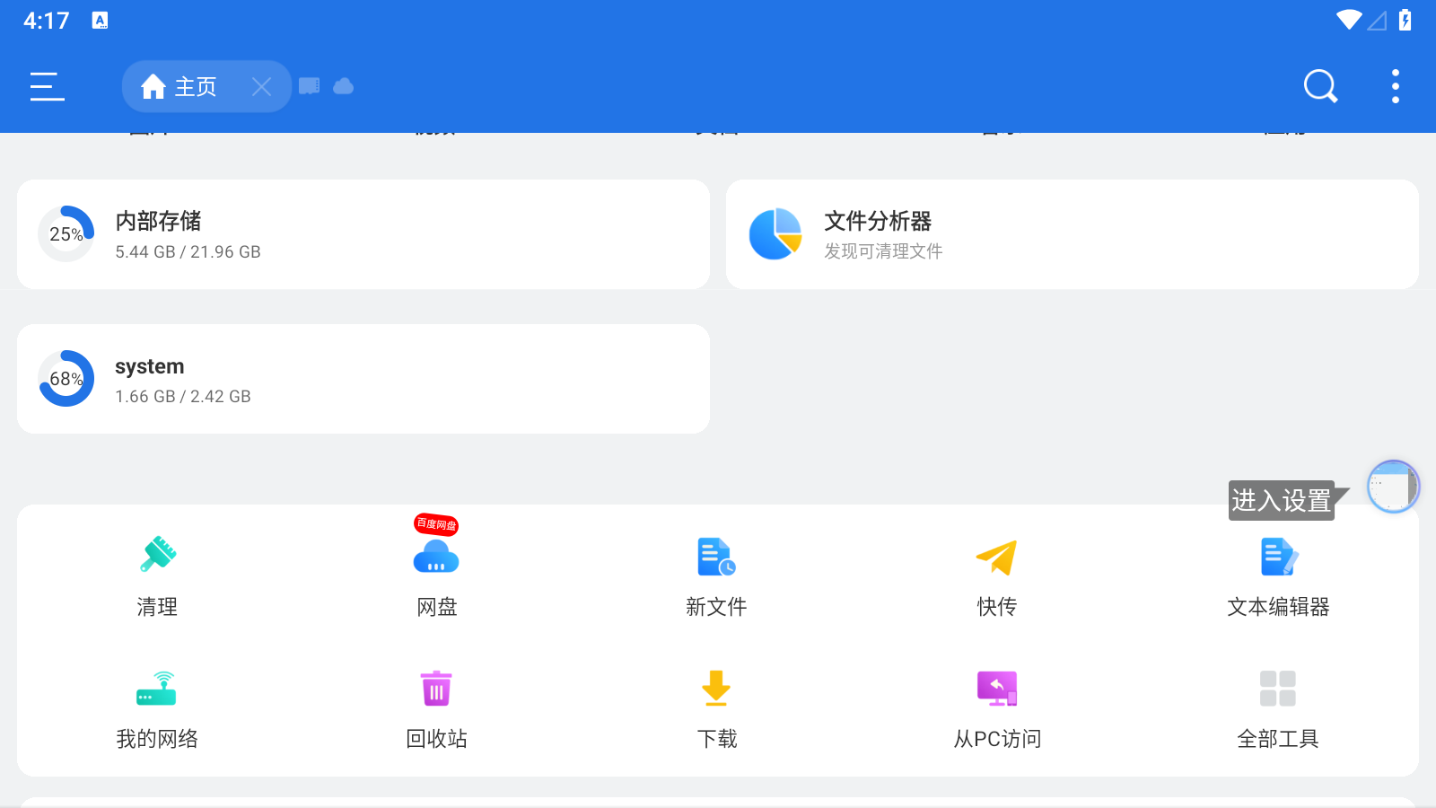 移动设备无法拥有与计算机一样多的内存。内存有限、存储空间逐渐缩小的事实引起了用户的极大兴趣。当你使用ES文件浏览器时,这个头痛的问题就迎刃而解了。一旦安装在您的移动设备上,ES 文件资源管理器将自动扫描您手机上存在的所有文件和文件夹。在不到一分钟的时间内,每个文件所占用的空间的所有参数包括音频(音频和音乐文件)、文档(word、excel、PowerPoint)图像、娱乐应用程序。只需向下滚动即可查看ES File Explorer 分析和预测。此外,该应用程序还列出了冗余、重复或垃圾文件,以便用户可以及时释放内存以获取更多存储空间。