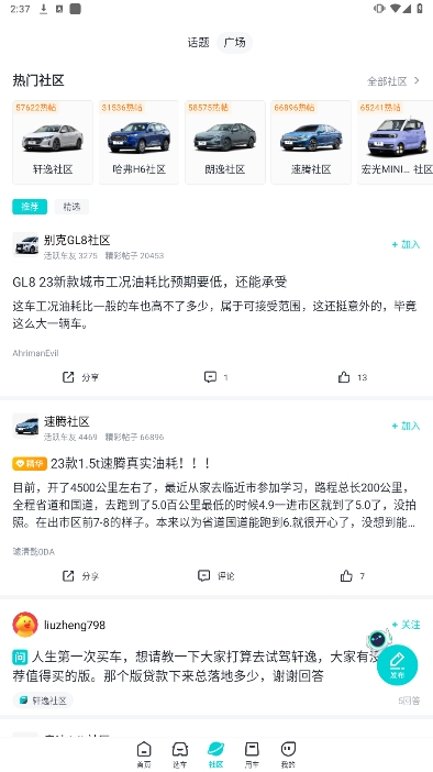 4、想要买车的用户可以在这里查看各种参考文章,了解车型的详细信息;