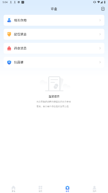 3、药品使用审评,包括药物相互作用、配伍禁忌、药品食品审评,以及超过10万条专业药品说明书;