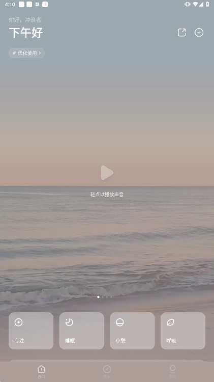 潮汐是一款模拟大自然声音的应用,为用户在不同场景下提供放松、学习或睡眠的声音背景。应用程序可以提供各种来自大自然的声音,例如海浪、鸟鸣、雨声、风声等,来模拟大自然的环境声音。