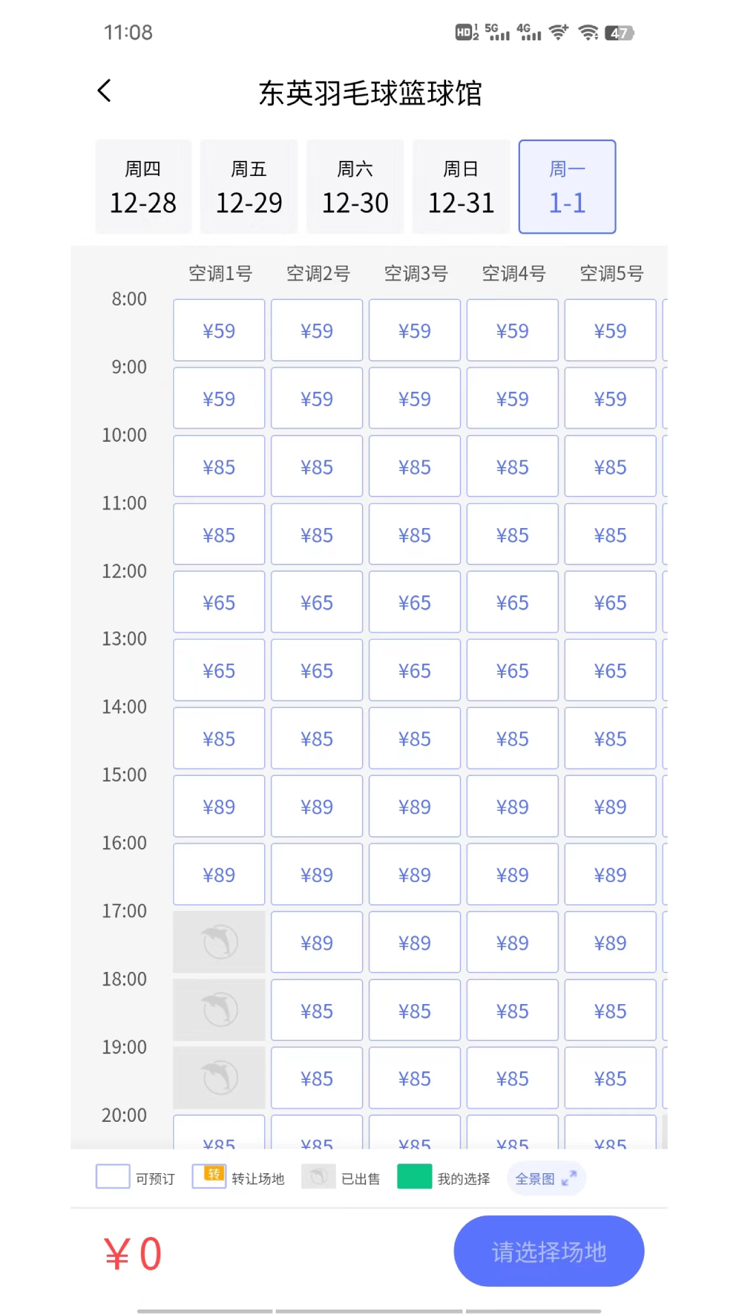 4、预订场地:根据预约时间、场地类型等过滤条件,选择合适的场地并预订场地。