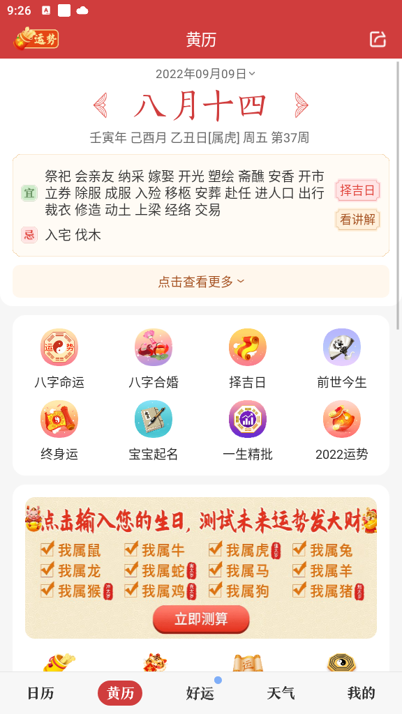 1.日历:只要看看农历和黄历,假期就齐全了。