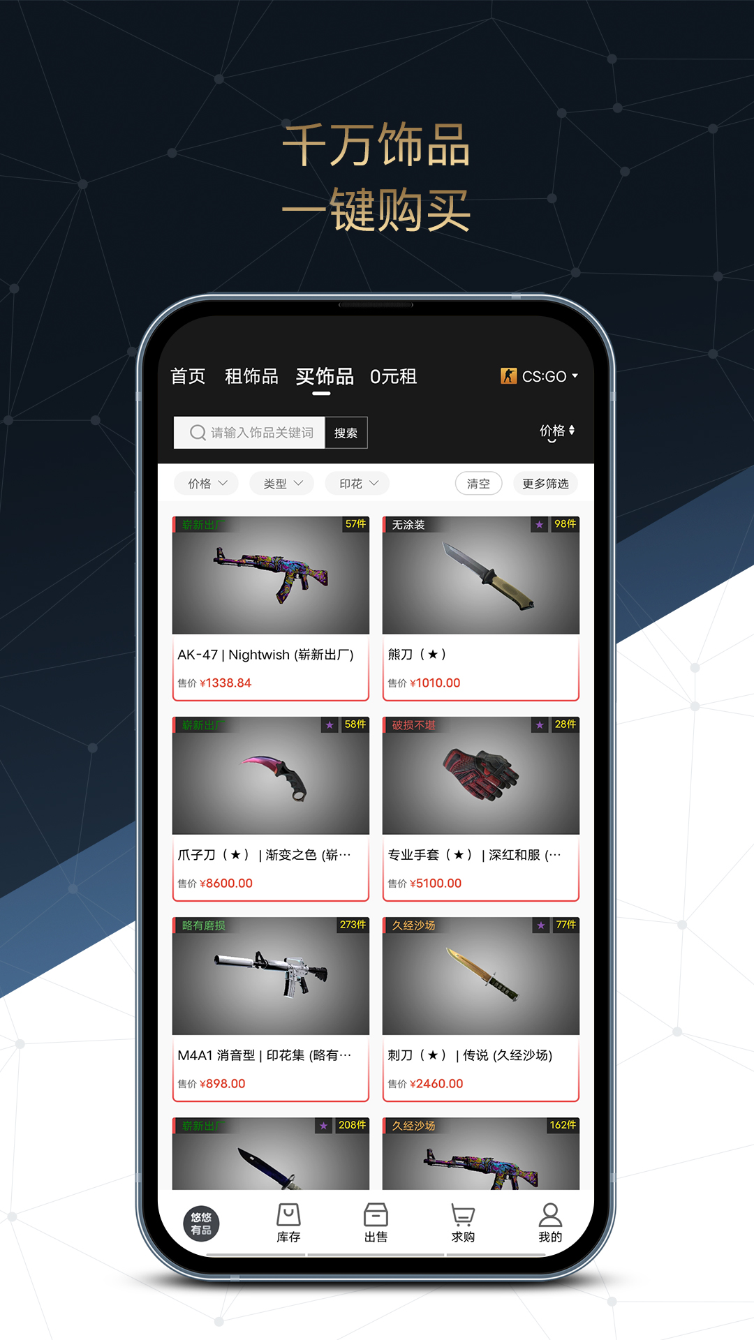 1.海量饰品,低于市场平台价格