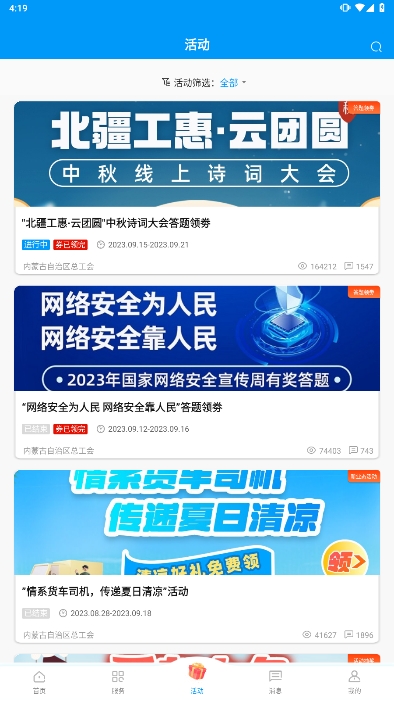 北江共惠是内蒙古自治区总工会正式推出的智慧员工服务平台。涵盖工会动态、员工关爱、继续教育、合法维权、工会交流、电子书店等服务,更好地服务员工。它提供一站式服务。用户还可以在线学习、参与知识猜谜活动。包含技能提升、强大技能领域、电子书等多个服务版块。