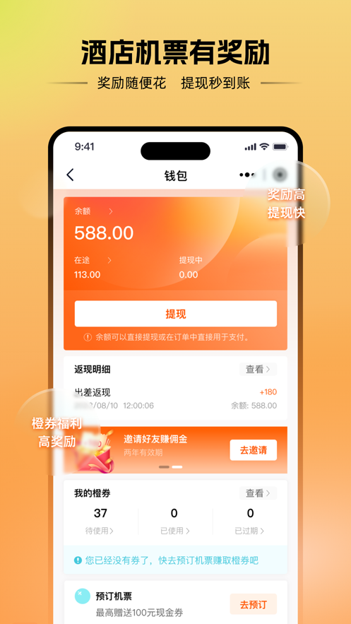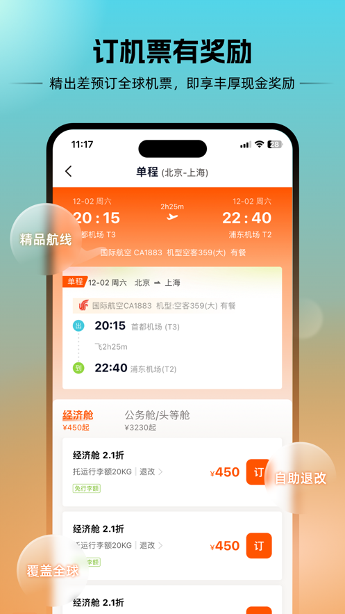 - 预订机票有奖励,预订全球航班精准商旅即可获得丰厚现金奖励;