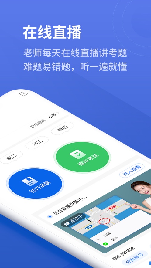 真实再现理论考试场景和科目三灯考试官方记录,让学车更有效,考驾照更轻松。