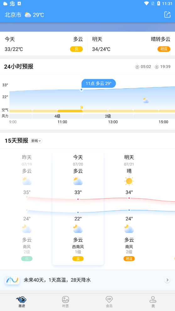 墨迹天气是一款带有墨迹的天气软件,可以预测15天的天气。它可以随时随地定位地点、准确了解当地天气状况以及未来15天的天气预报等功能,帮助用户提前做好准备。