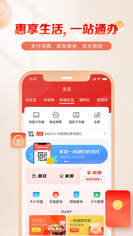 4、生活场景:丰收互联网紧密结合生活场景,为用户提供购物、旅游、教育、医疗等多种生活服务。