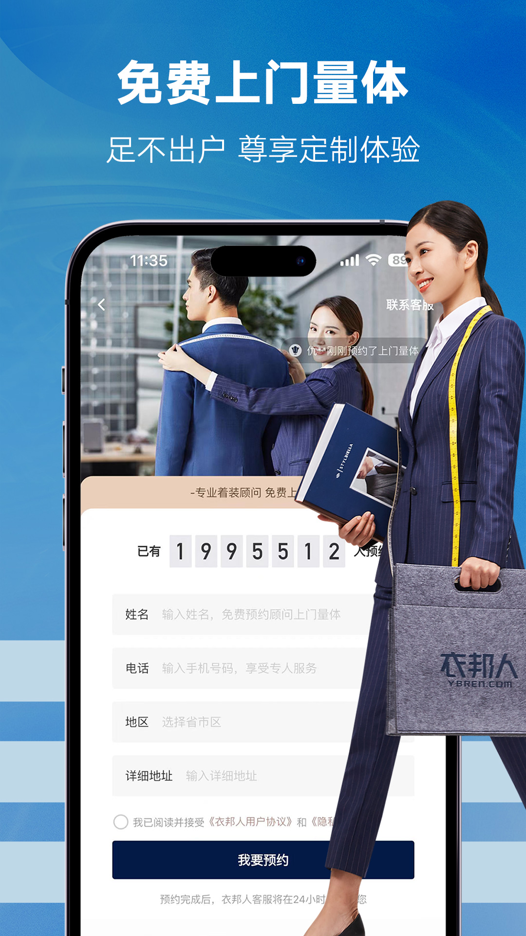 3、上门测量身体:亿帮人提供免费上门测量身体服务,让用户足不出户即可享受定制化体验。