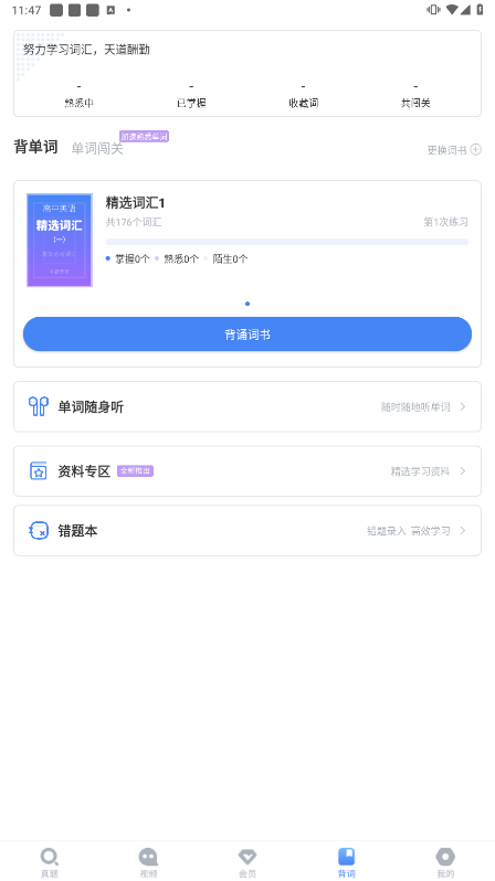2.科学分类模块,提高效率:将单词分为单词挑战、单词复习、自学视频三个模块,让你的思维更清晰,记单词更高效。