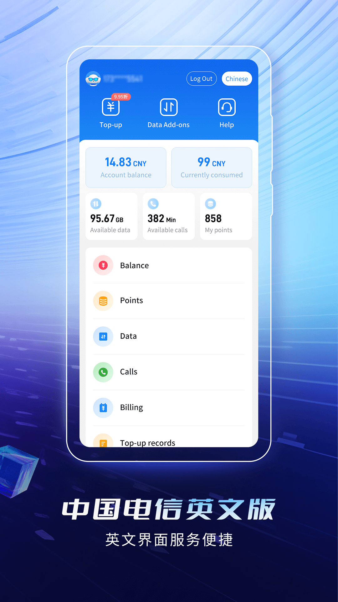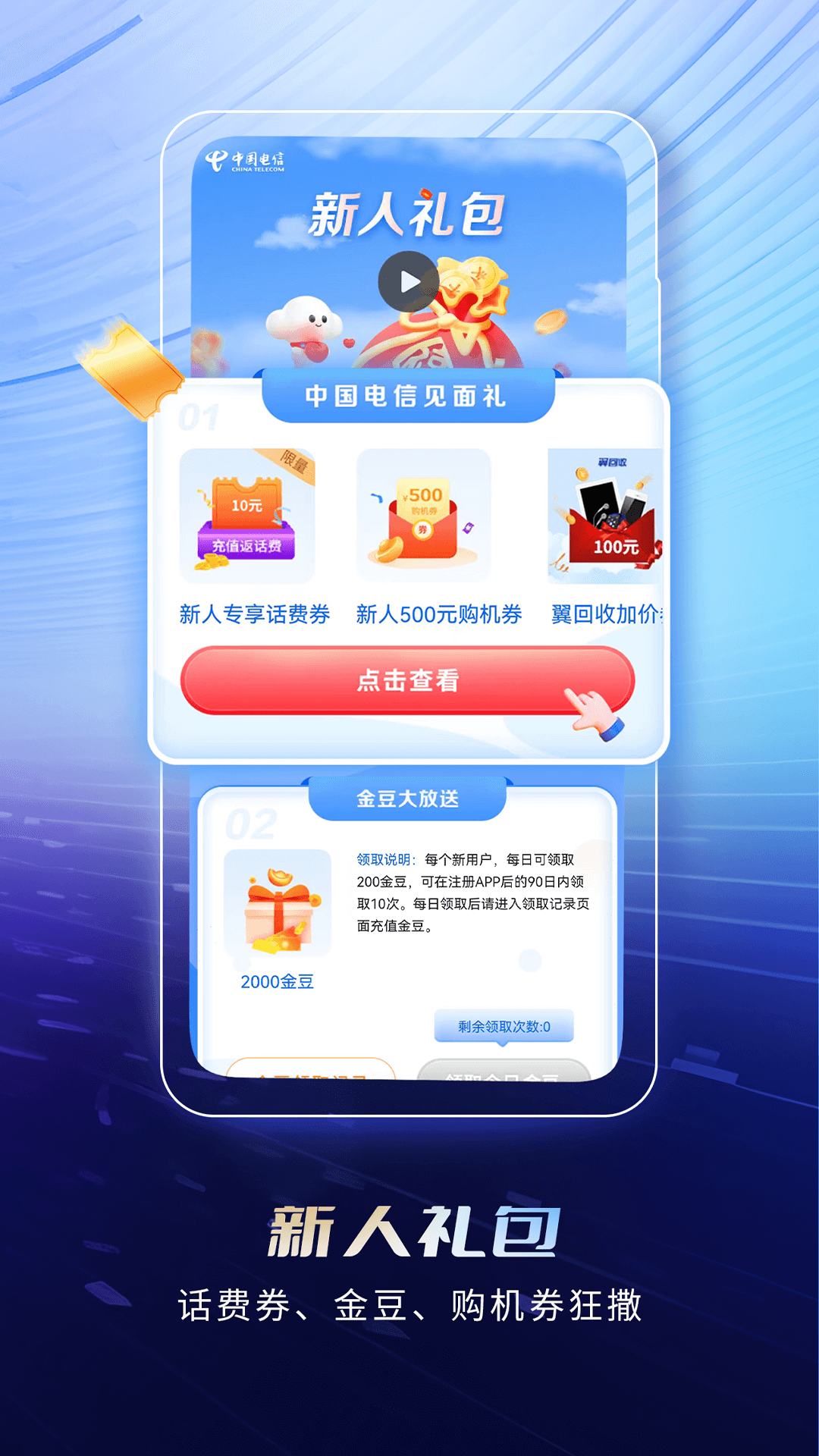 1。下载并安装:通过手机或官方电信网站随附的应用商店下载并安装中国电信应用程序。