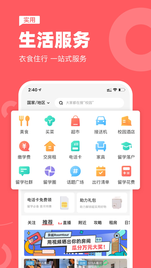 1。在海外生活,总是在外国。老年人和老年人推荐的海外生活服务平台包括大规模的海外生活广播,国际学生带您参观校园,老年人和老年人分享他们的学业,大学招生人员为您解释大学政策,外交国家的好房屋,并直接招募企业企业。
