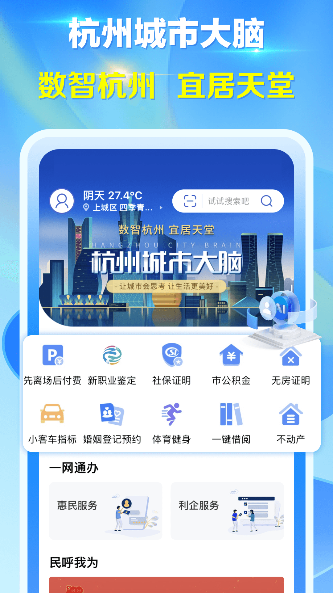 用户可以通过扫描应用程序市场的QR码或在应用商店中搜索“ Hangzhou City Brain”来下载和安装应用程序。