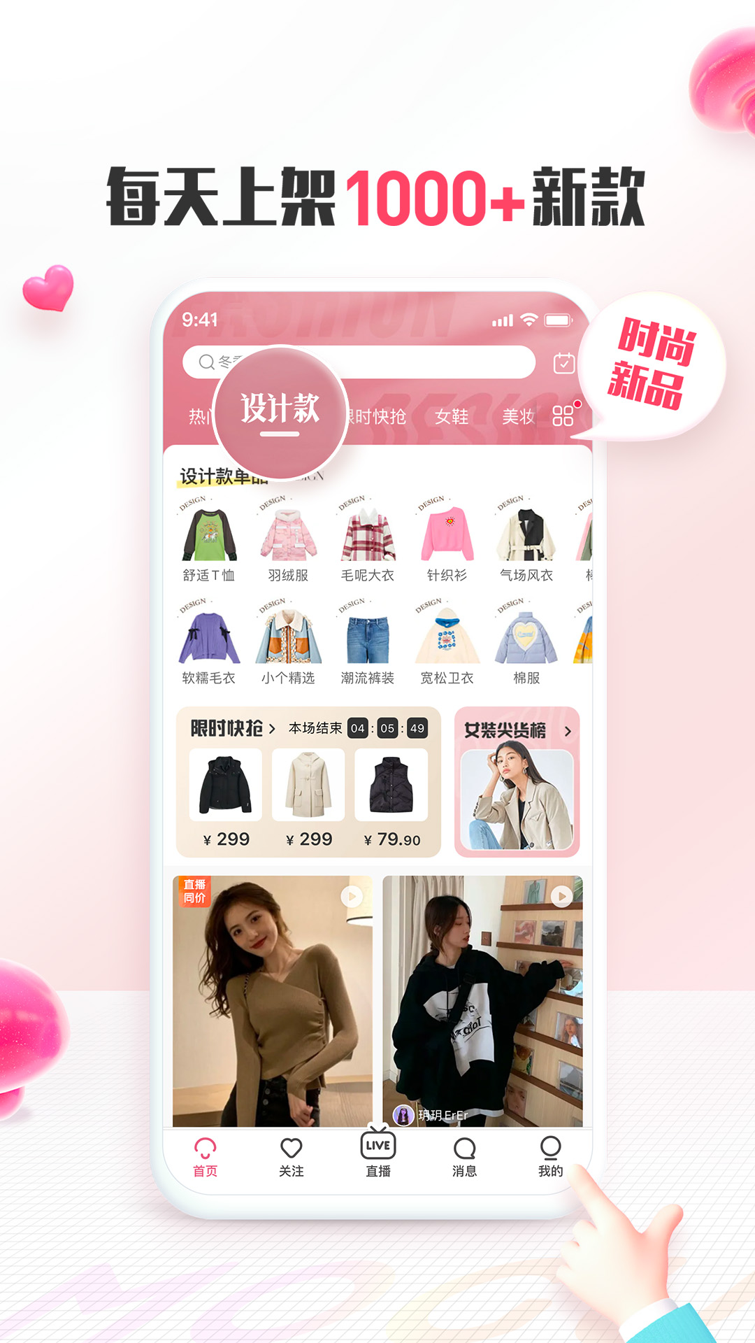 3.直播房间:观看现场房间,了解季节性时尚物品和品牌折扣信息。