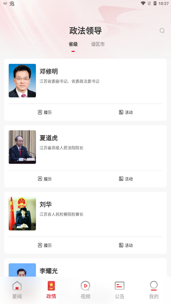 它是该国唯一完全介绍有关江苏省,市政和县政治和法律机构领导的信息的网站。开放透明,一站式访问以及在新时代的法治建设中的参与感是直接而充实的。