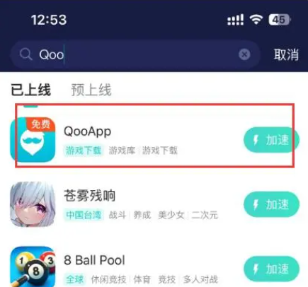 3、玩家进入软件首页后,使用uu加速器打开qoo
