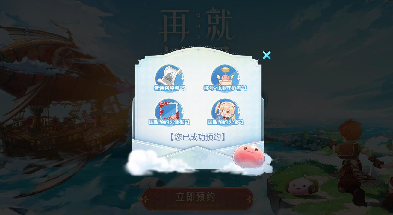 3、此时会弹出【预约成功】。已预约的朋友还可获得丰厚的预约奖励,可在服务器上线时在邮件中领取。