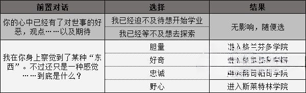 2. 在分院仪式上,分院帽会问玩家两个问题。第二个问题将决定玩家将就读的学校。
