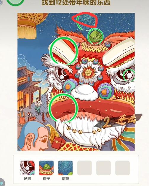 寻找年味是《无敌脑王》手游的第33关。该关卡要求玩家在一张新年舞狮的图片中找到12件具有年味的东西。那么如何通过无敌脑王第三十三关呢?呢绒?以下为玩家拨打无敌脑洞王者找年味找出到图中12处带年味的东西!