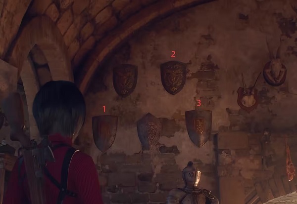 用枪按照1-2-3的顺序击打墙上的盾牌