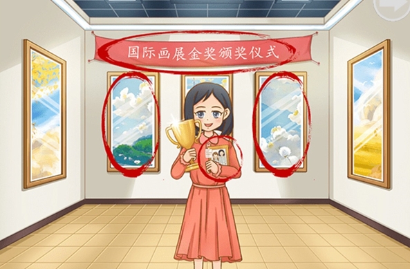 4. 在最后一个场景中,单击手臂中的绘画、横幅和照片。