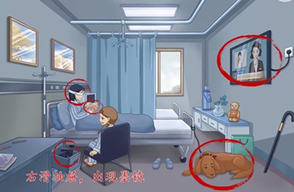 在《大脑之王》的“重获光明”关卡中,玩家需要寻找病房内的各种线索,发现事情的真相。比较难找的是抽屉里的太阳镜。你需要先打开抽屉才能找到它们。剩下的一目了然,比较简单。