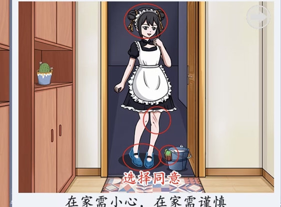 1.玩家需要点击清洁阿姨的茬、脖子、消毒剂,同时还要注意阿姨手中的拖把,注意水桶里的毛巾,不要让他进来;