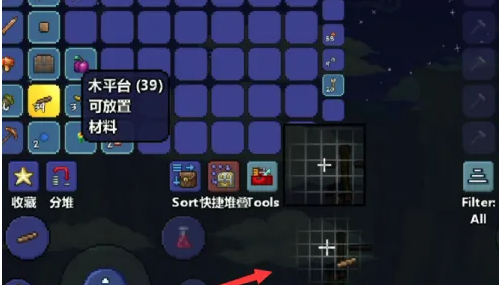 在泰拉瑞亚游戏中,作为新手,遇到夜晚的时候,需要找到一个好的藏身之处,避免在夜间受到外界的伤害。可以做一个平台躲在半空中,相对安全。