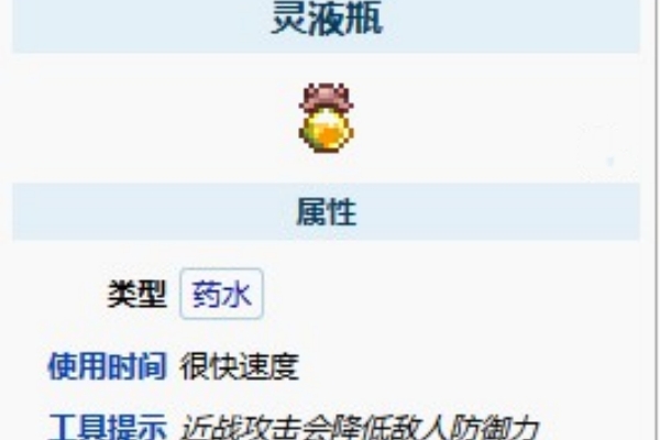 在泰拉瑞亚中制作灵质瓶,玩家需要使用1个水瓶和2个灵质在输液站附近合成。灵质瓶可以让玩家在进行近战攻击时降低敌人20点防御。性价比较高,请注意效果不能叠加。