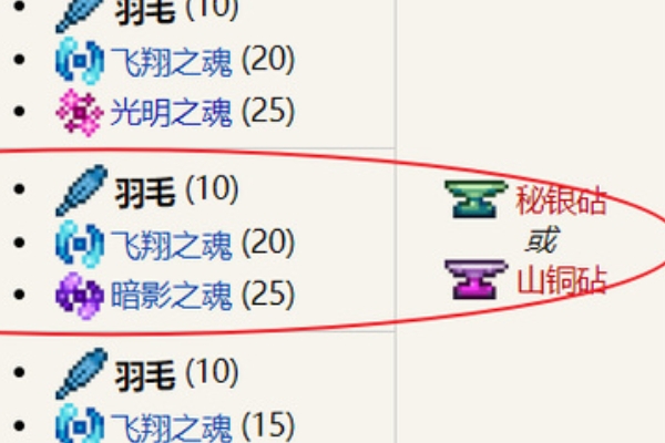 1.首先,玩家需要准备10根羽毛、20个飞魂、25个暗影魂。