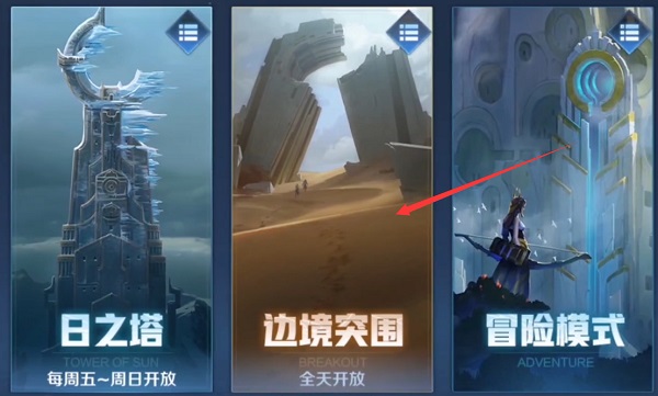 3、这里我们可以看到很多不同的模式,其中“边界突围”模式就是吃鸡模式。