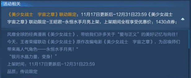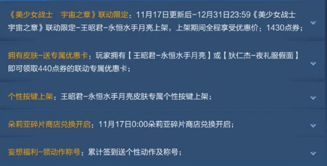 游戏的面具皮肤与美少女战士活动同时推出,将于11 月17 日至12 月31 日期间推出。