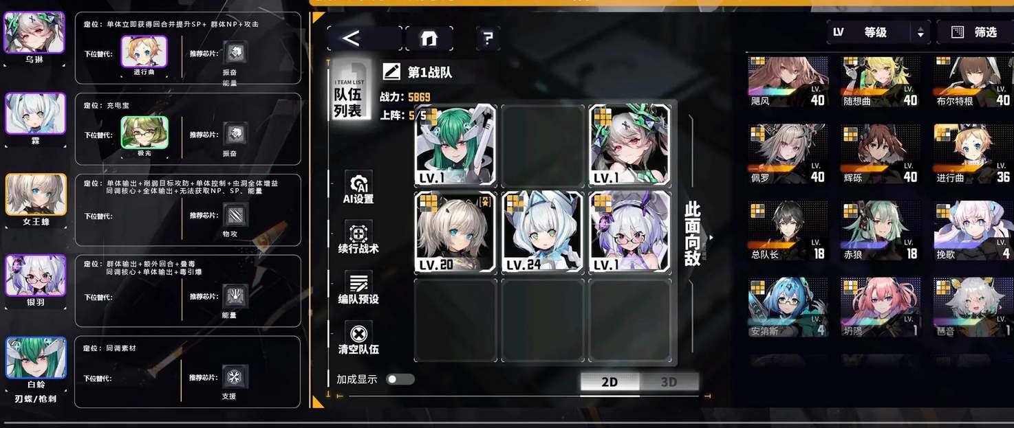 推荐理由:该阵容有两个输出角色,玩家可以使用搭配武林以及激励芯片的改进来快速释放大招。
