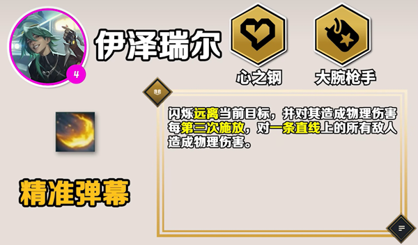 技能:ez跳跃到敌人附近造成伤害,第三次伤害会对直线上的所有人造成物理伤害。